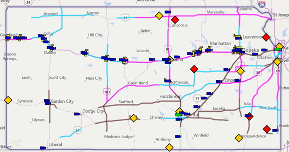 Kansas 511 Road Conditions Map – W ICHITA, Kan. (KWCH) – Late Monday night: The Kansas Highway Patrol reported all state highways are closed in the following counties: Barton, Edwards, Kiowa, Pawnee, Reno, Rice, Rush, and most of . Residents are advised to stay off the roads. If you must venture out, here are tools and tips to help keep you safe. .